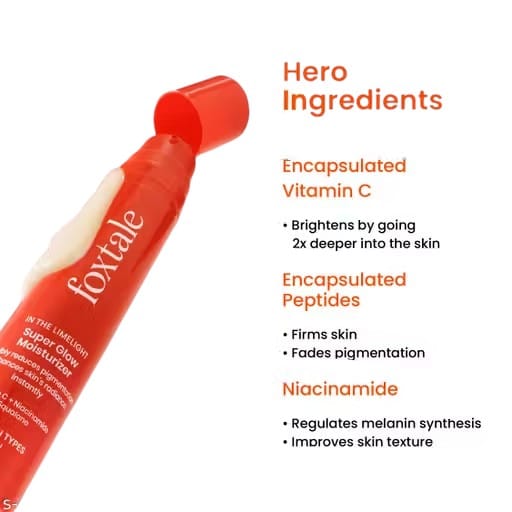 The Foxtale Vitamin C Super Glow Moisturizer is your ultimate skincare essential for instantly radiant, hydrated, and even-toned skin. Powered by Encapsulated Vitamin C, this lightweight cream penetrates 2X deeper into the skin, giving you a visible glow from the very first use. Designed for both women and men, it’s suitable for all skin types, making it the perfect everyday moisturizer for brighter, healthier-looking skin.