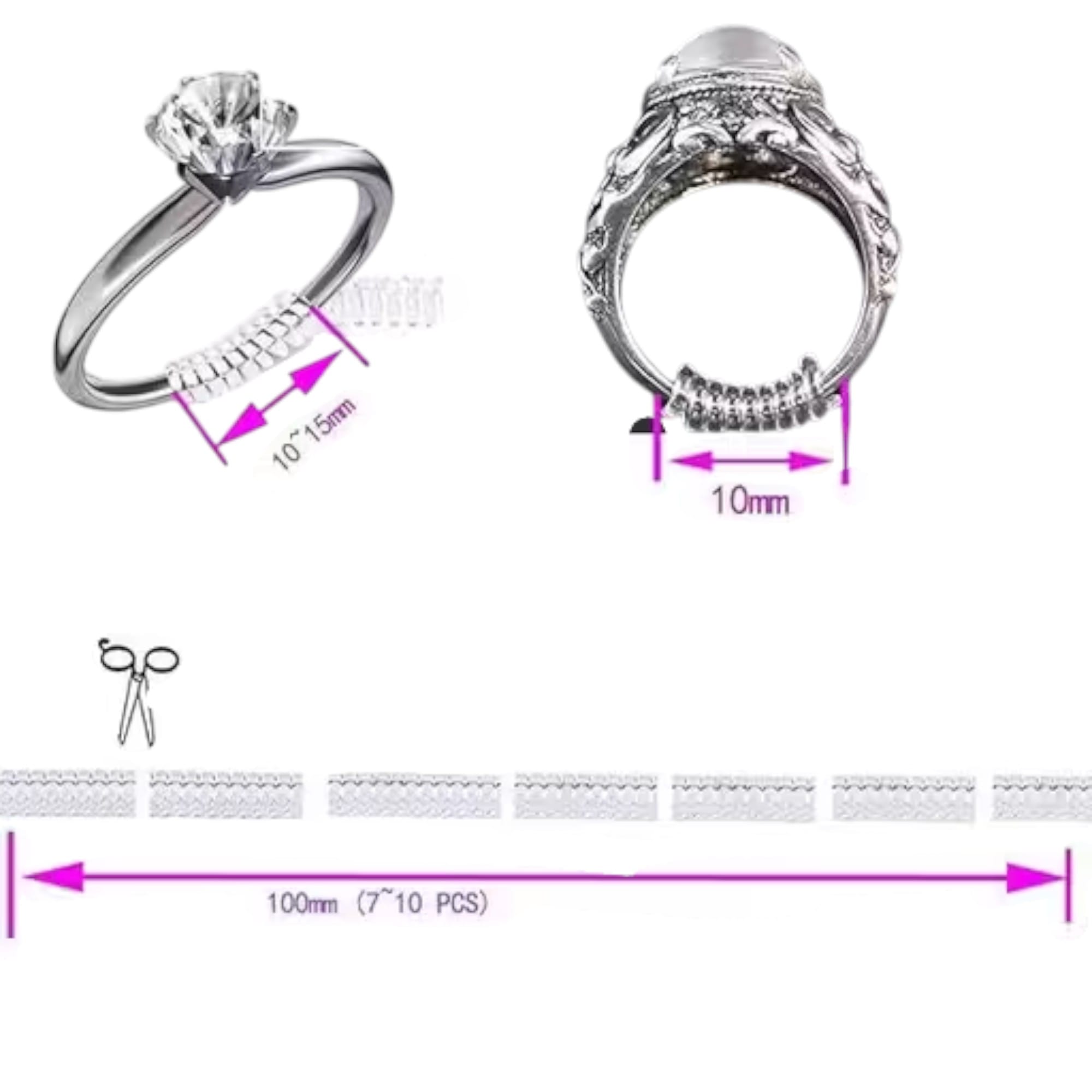 The Invisible Ring Size Adjuster for Loose Rings is your ultimate solution to ensure your rings fit perfectly, no matter the circumstance. Designed to accommodate any ring size, this innovative product eliminates the discomfort of loose fitting rings while enhancing your overall wearing experience. The adjuster is crafted to be barely visible, blending seamlessly under the ring band for a discreet yet functional fix. Its eco-friendly and skin-safe material ensures a comfortable fit, so lightweight that you won’t even notice it’s there, making it ideal for daily wear or special occasions.