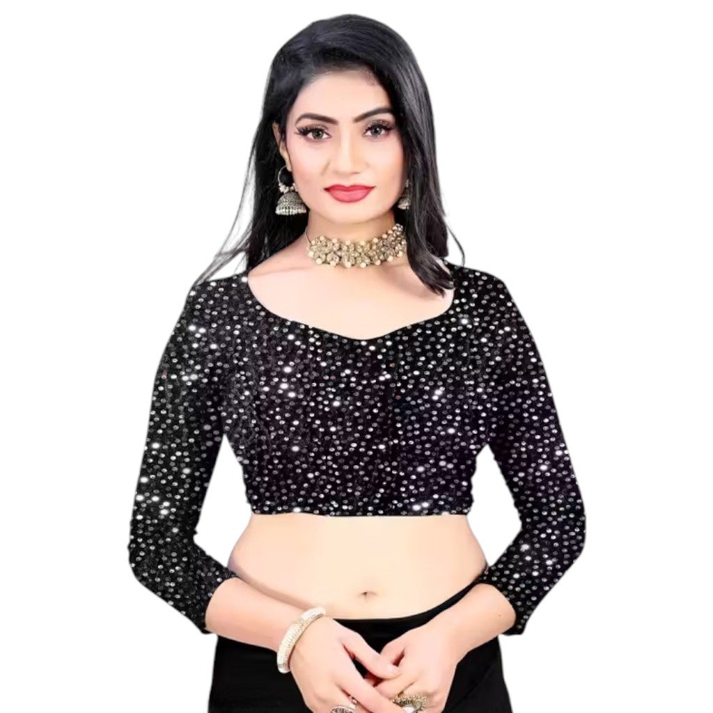 - Blouse Fabric: Velvet with sequin detailing for added texture