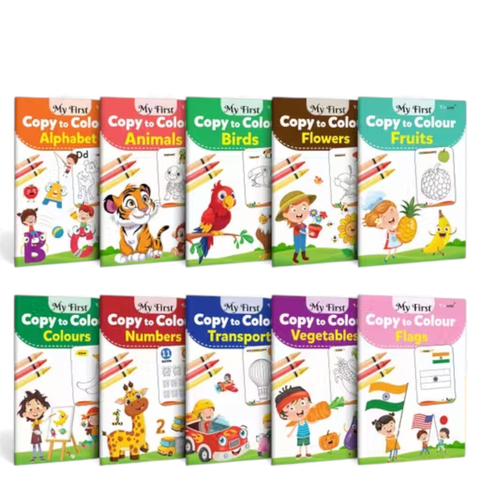 Crafted with charming illustrations and simple designs, these books encourage kids to develop key skills such as hand-eye coordination, fine motor control, and colour recognition. Measuring 5.5 x 8.5 inches, the books are perfectly sized for little hands, making them easy to handle at home, in classrooms, or on the go.